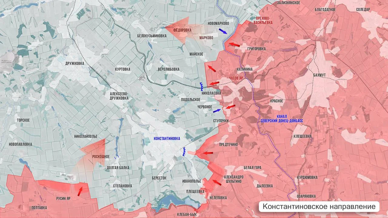 В районе Иванополья идут позиционные столкновения. Предтечино украинская сторона удерживает, однако давление продолжается. На северо-западных подступах к Часову Яру — около Майского и Марково — бои остаются ожесточёнными, но без значительных изменений.