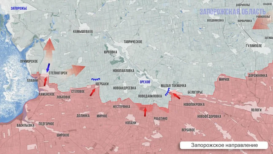 На запорожском направлении сохраняется позиционная, но крайне напряжённая борьба. Основные столкновения происходят в районах Приморского и Степногорска — населённых пунктов, которые ВСУ продолжают удерживать с большими трудностями.