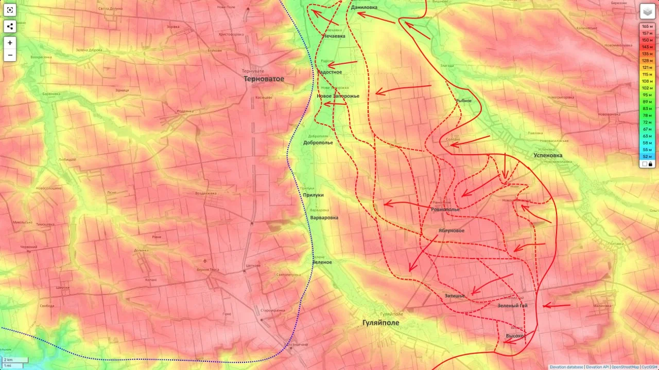 - Гуляйпольский участок: Подразделения ВС РФ установили контроль над территорией протяженностью 9 км вдоль реки Янчур, на стыке Запорожской и Днепропетровской областей.