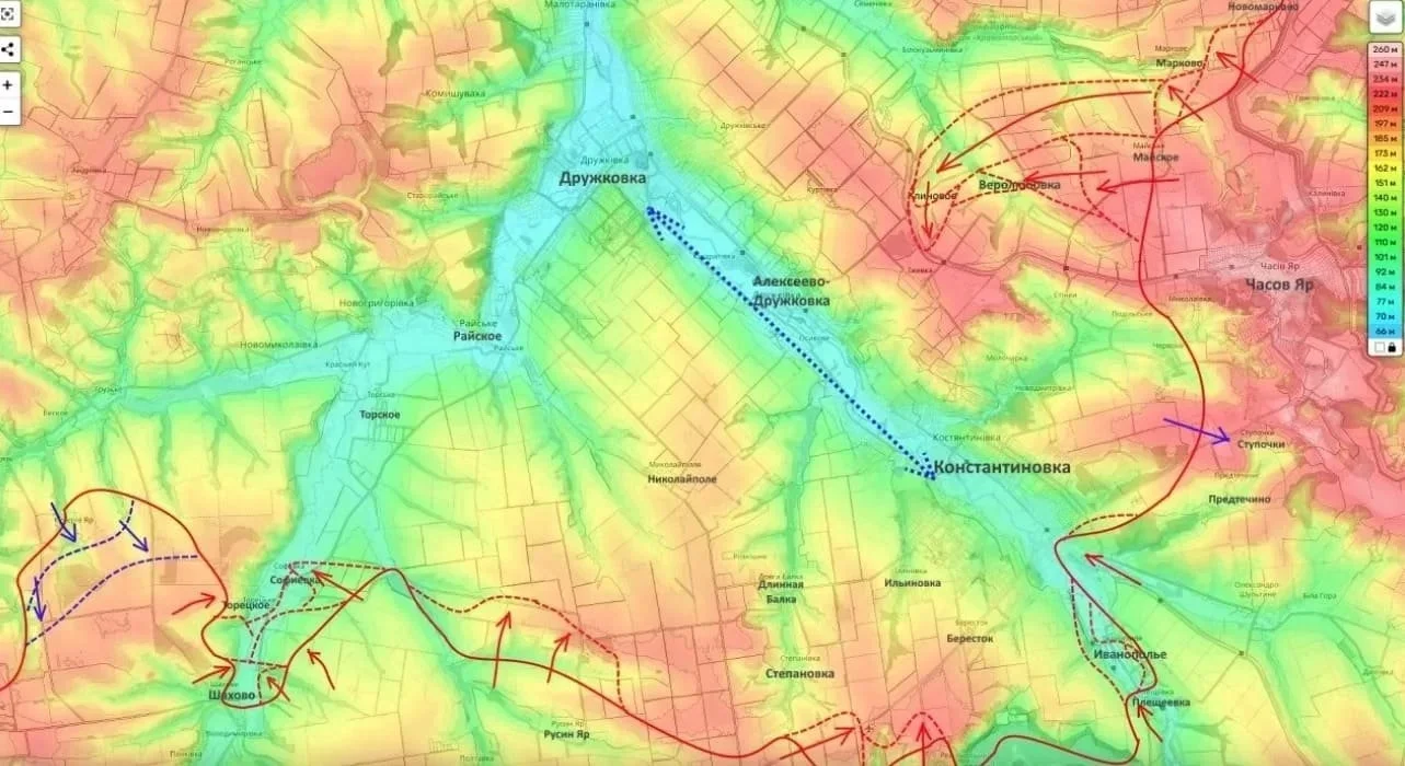 Передовые отряды ВС РФ вышли в тыл Константиновской группировки врага, остановившись всего в нескольких километрах от окраин Алексеево-Дружковки. Этот маневр стал полной неожиданностью для украинского командования.