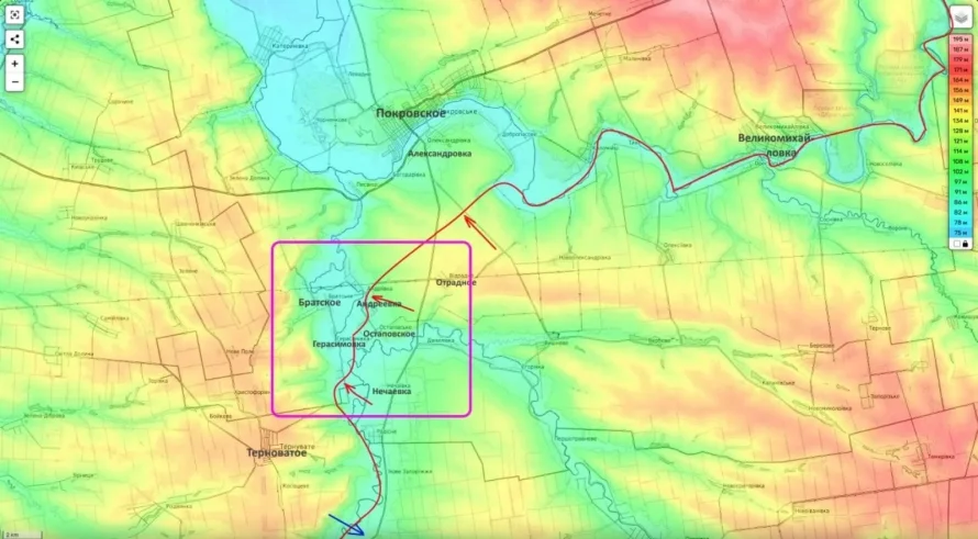 Однако на этом наступательный порыв не иссяк. По данным эксперта, боевые действия уже сместились на южные окраины соседней Герасимовки. Тактический замысел российского командования становится все более очевидным: