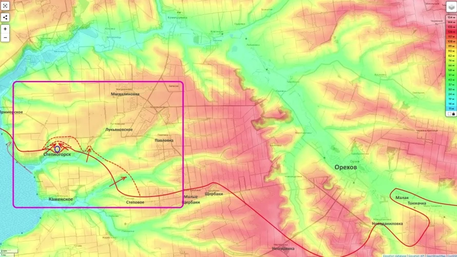 После ожидаемого падения Степногорска наши войска продолжат движение к населенным пунктам Магдалиновка, Лукьяновское и Павловка. Это позволит взять под контроль высоты, перерезать логистику врага и заставить его либо отступить, либо сражаться в котле. Одновременно идут встречные бои на западных окраинах Малой Токмачки, откуда противник пытается контратаковать, чтобы обезопасить Орехов.