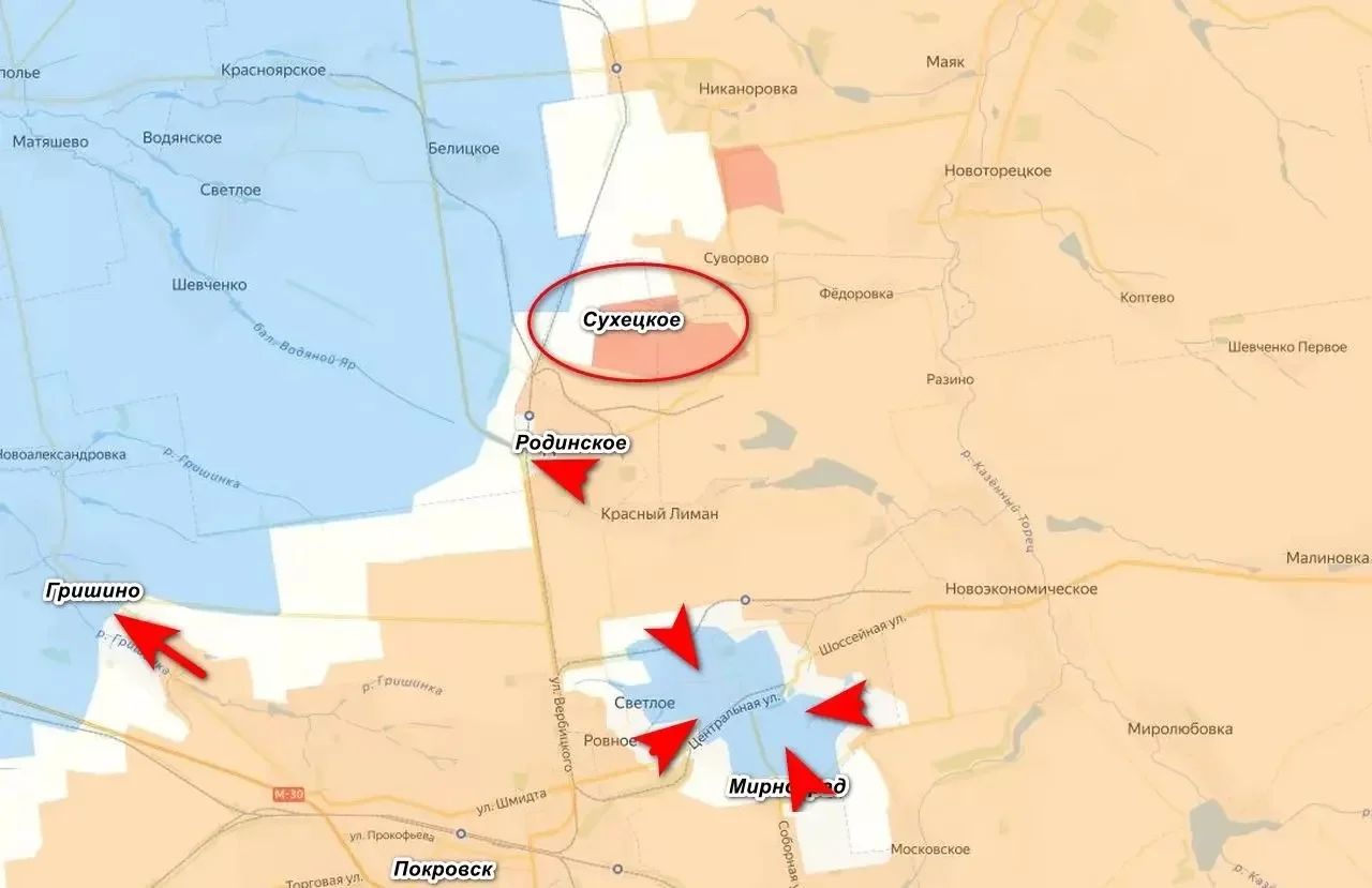 Существенные изменения произошли и на Покровском направлении. Российские подразделения вернули контроль над населённым пунктом Сухецкое в районе так называемого Добропольского выступа. Группировка войск «Центр» начала последовательное восстановление ранее утраченных позиций после контрудара ВСУ.