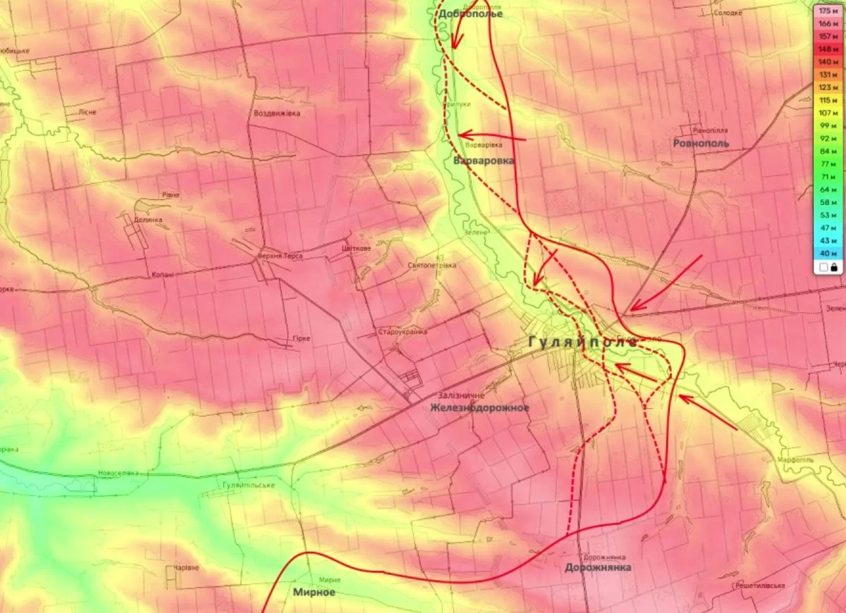 По данным Юрия Подоляки, говорить о полном падении Гуляйполя пока преждевременно, но ситуация развивается именно по этому сценарию. Наступая с северо-востока, российские подразделения заняли почти половину города.