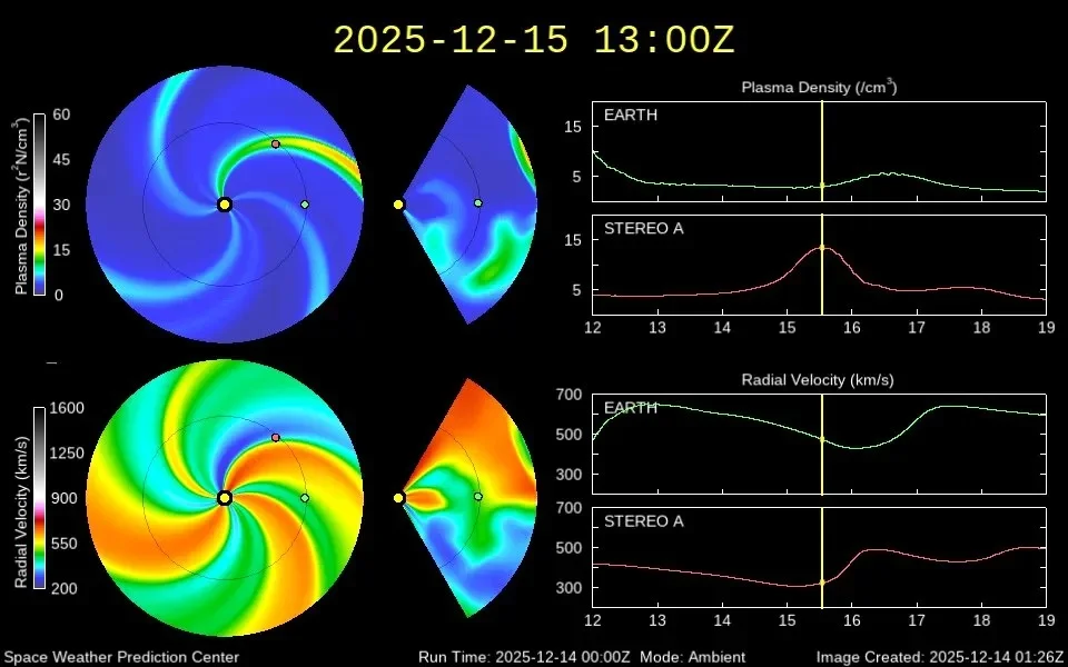 Согласно математической модели распространения солнечного ветра WSA-Enlil, ситуация резко изменится к концу дня 16 декабря. Сценарий развития событий выглядит следующим образом: