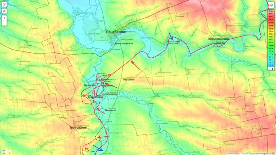 Слияние двух векторов атаки означает, что Терноватое фактически берется в клещи. Российские войска не просто выровняли линию фронта, но и создали предпосылки для дальнейшего давления на Гуляйполе, лишая ВСУ возможности безопасной ротации и подвоза боеприпасов на данном участке.