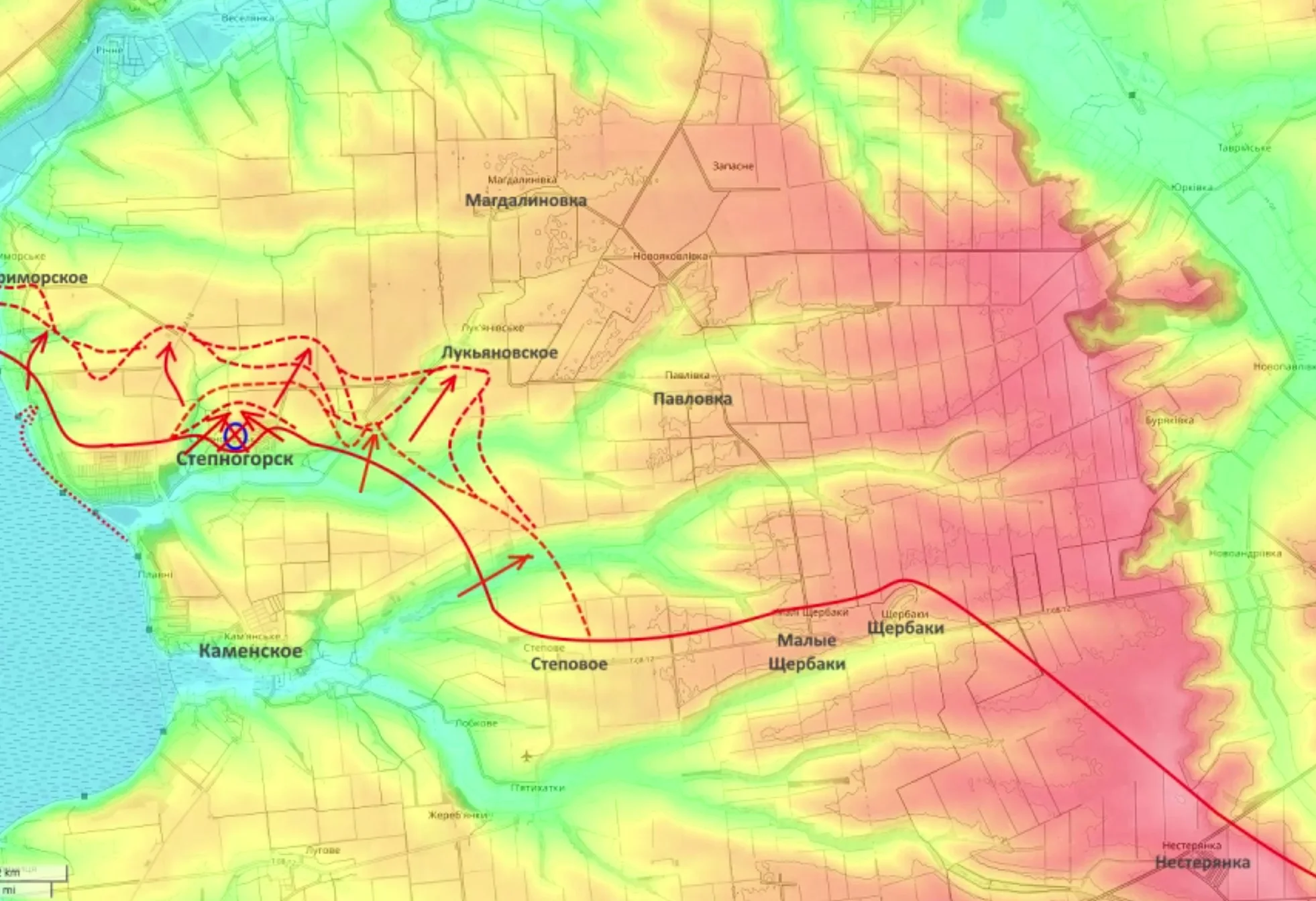 На данный момент передовые отряды продвигаются в направлении населенных пунктов Магдалиновка и Лукьяновское. Замысел командования становится очевиден: российские войска намерены обойти укрепления противника, расположенные между второй и третьей линиями обороны, чтобы охватить Ореховскую группировку ВСУ с фланга и тыла.