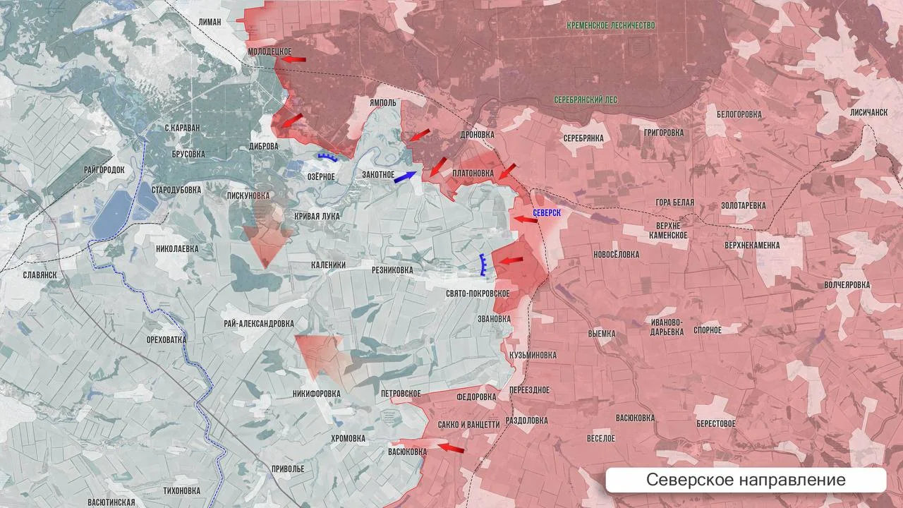 - Краснолиманский фронт: Здесь сохраняются позиционные бои по рубежу Дробышево-Яровая и в направлении Боровой без существенных изменений ЛБС.