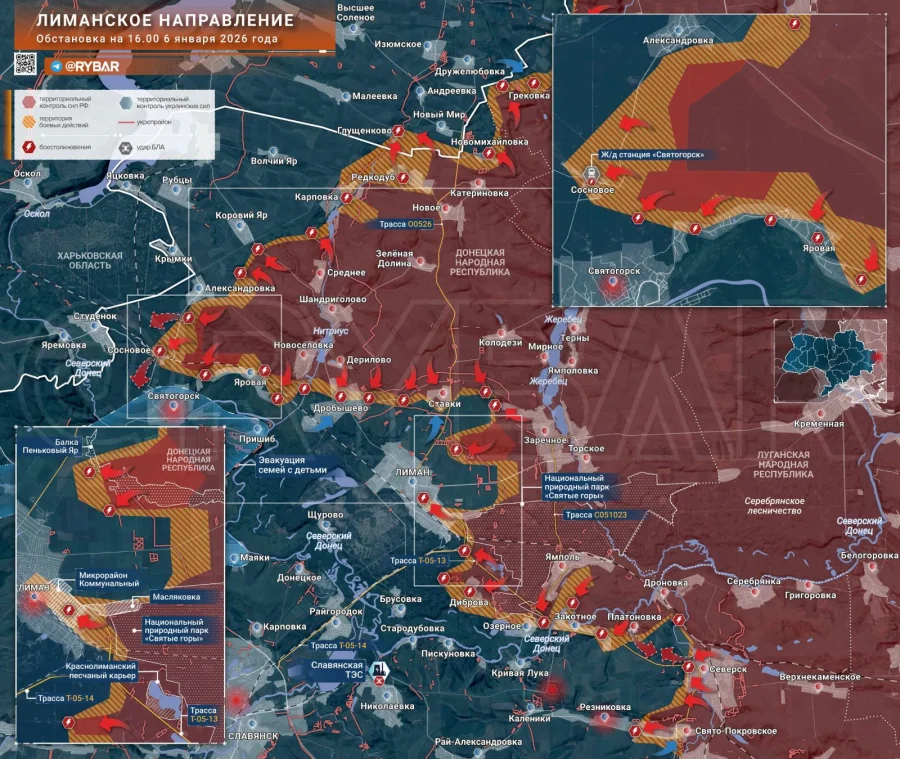 На Лиманском направлении ВС РФ наступают на флангах города, избегая прямых штурмов и продвигаясь преимущественно через лесные массивы. Ранее российские подразделения выбили противника с позиций в районе железнодорожной станции Святогорск. Территория Яровой в значительной степени остаётся «серой зоной», где действуют пехотные группы обеих сторон.