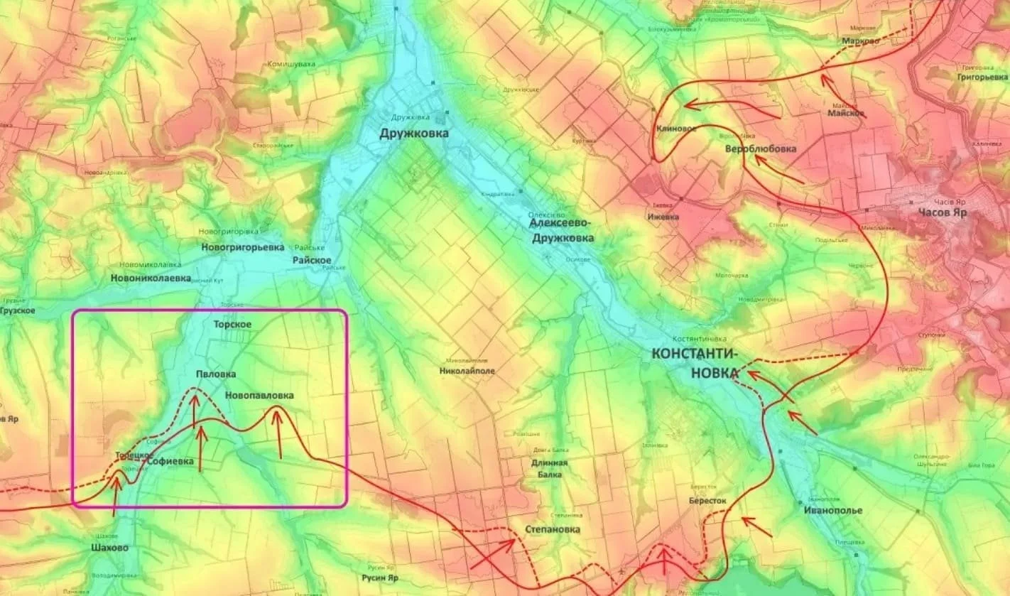 Одновременно с этим ожесточенные бои идут на северном фланге Константиновки. Российская армия давит противника в окрестностях населенных пунктов Веролюбовка и Марково, создавая угрозу охвата города с двух сторон.