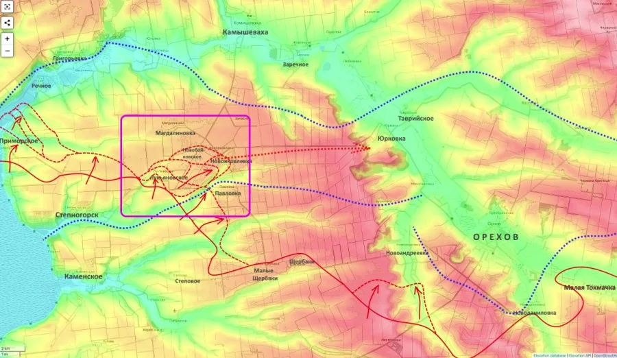 Также поступает информация о завершении зачистки села Приморское. Российские штурмовики вышли к следующему населенному пункту — Речное, где осталось зачистить небольшое садовое товарищество. За Речным, на противоположном берегу реки Конка, расположена Григоровка.