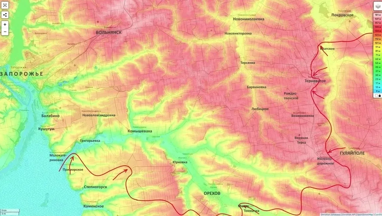 Ключевым фактором битвы за Запорожье становится контроль над водораздельными высотами. Овладение ими позволит российским войскам зайти в тыл всей Ореховской группировке ВСУ, что грозит противнику масштабным «котлом».