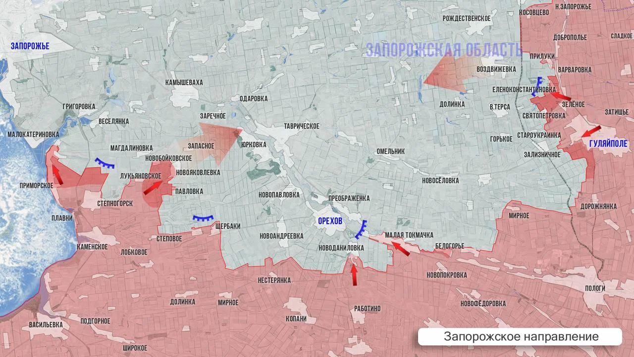 На Запорожском фронте наши части предпринимают активные попытки потеснить противника в северной части Приморского. Особое внимание уделяется восточному флангу, где российские бойцы используют береговую линию водохранилища для скрытного продвижения и нанесения ударов по позициям ВСУ в Малокатериновке.