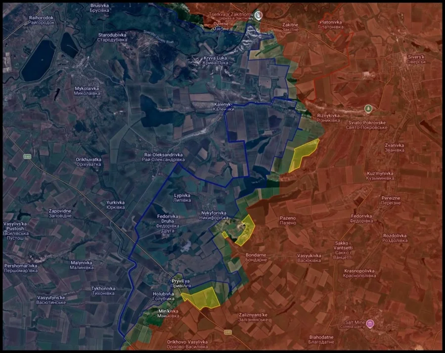 - Гришино и Родинское: Увеличена зона контроля в Гришино. Российские силы продвигаются западнее Родинского (в районе заброшенной шахты) и севернее города вдоль железнодорожной ветки.
