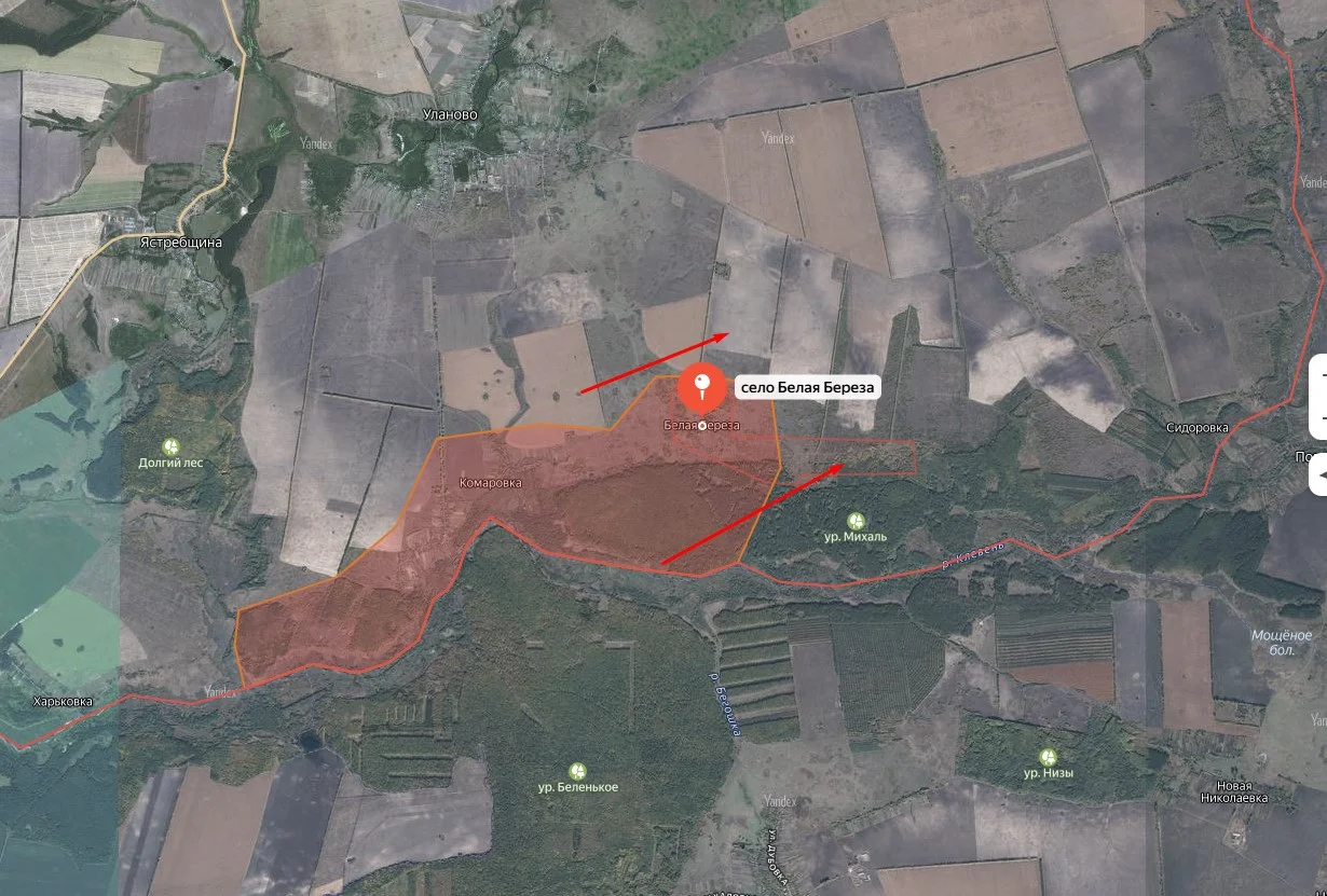 Подразделения группировки «Север» добились продвижения и на северном участке. Под контроль переведено село Белая Берёза Шосткинского района. Рядом расположенное Михалевское урочище использовалось противником для обстрелов приграничных районов России и запуска беспилотников.