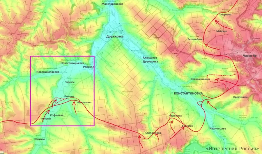 - Цель наступления — выход на рубеж Новониколаевка — Новогригорьевка — Райское. Это позволит осуществить глубокий охват Константиновской группировки ВСУ.