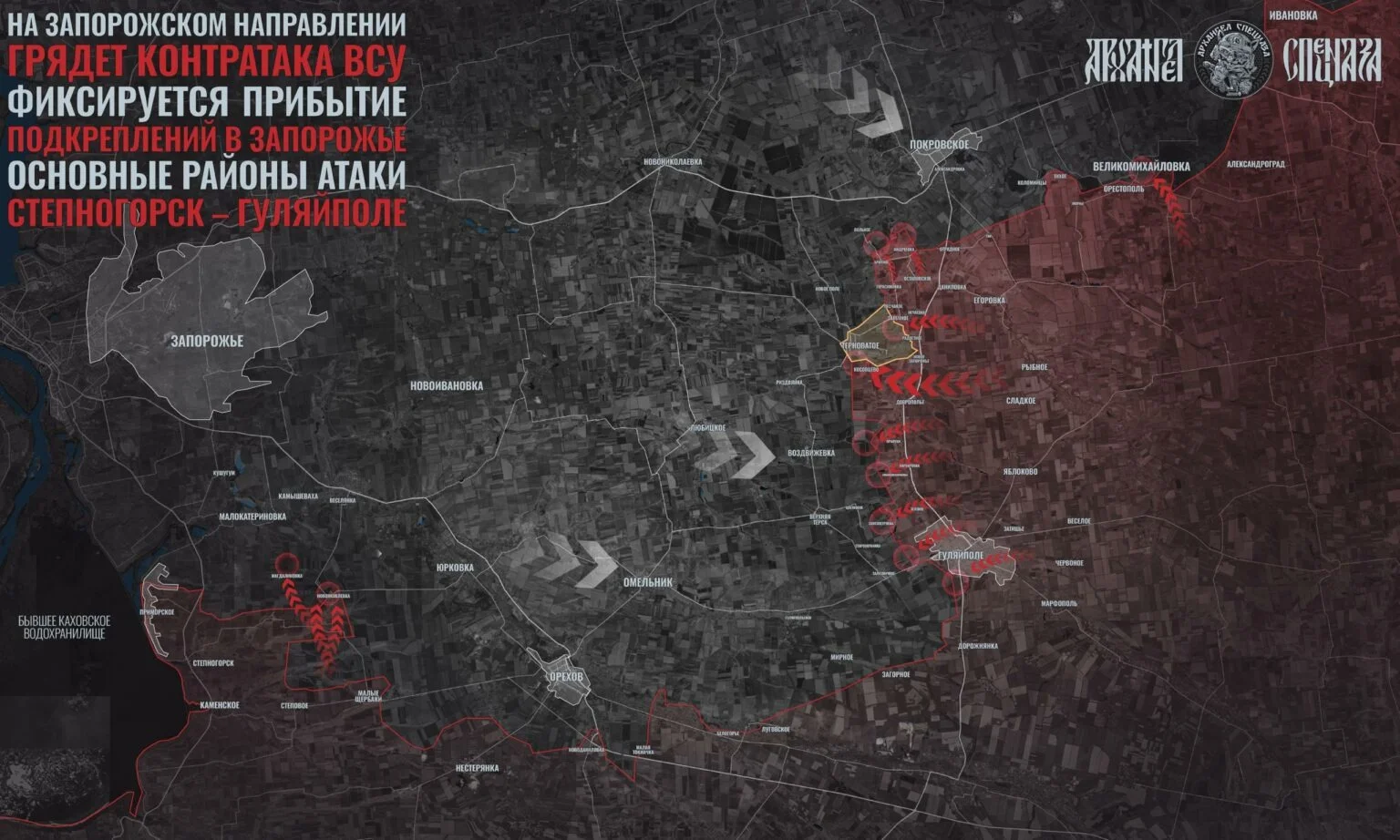 - Гуляйполе: Продолжаются тяжелые встречные бои. Противник копирует тактику инфильтрации, засылая одиночных штурмовиков, однако российские бойцы (в частности, 1466-й мсп) успешно купируют эти попытки.