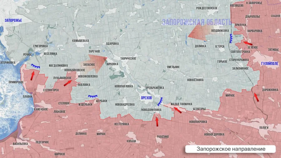 Западнее, на линии Приморское — Речное — Веселянка, российские бойцы формируют надежный плацдарм для прикрытия сил, наступающих на Юрковку и охватывающих Ореховский оборонительный узел.