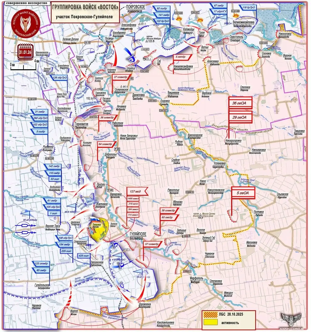 К утру 1 февраля 2026 года линия боевого соприкосновения остаётся напряжённой практически на всех ключевых направлениях. Бои носят маневренный характер: на одних участках фиксируется планомерное продвижение российских подразделений, на других — ожесточённые встречные схватки и контрбатарейная дуэль.