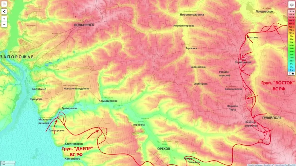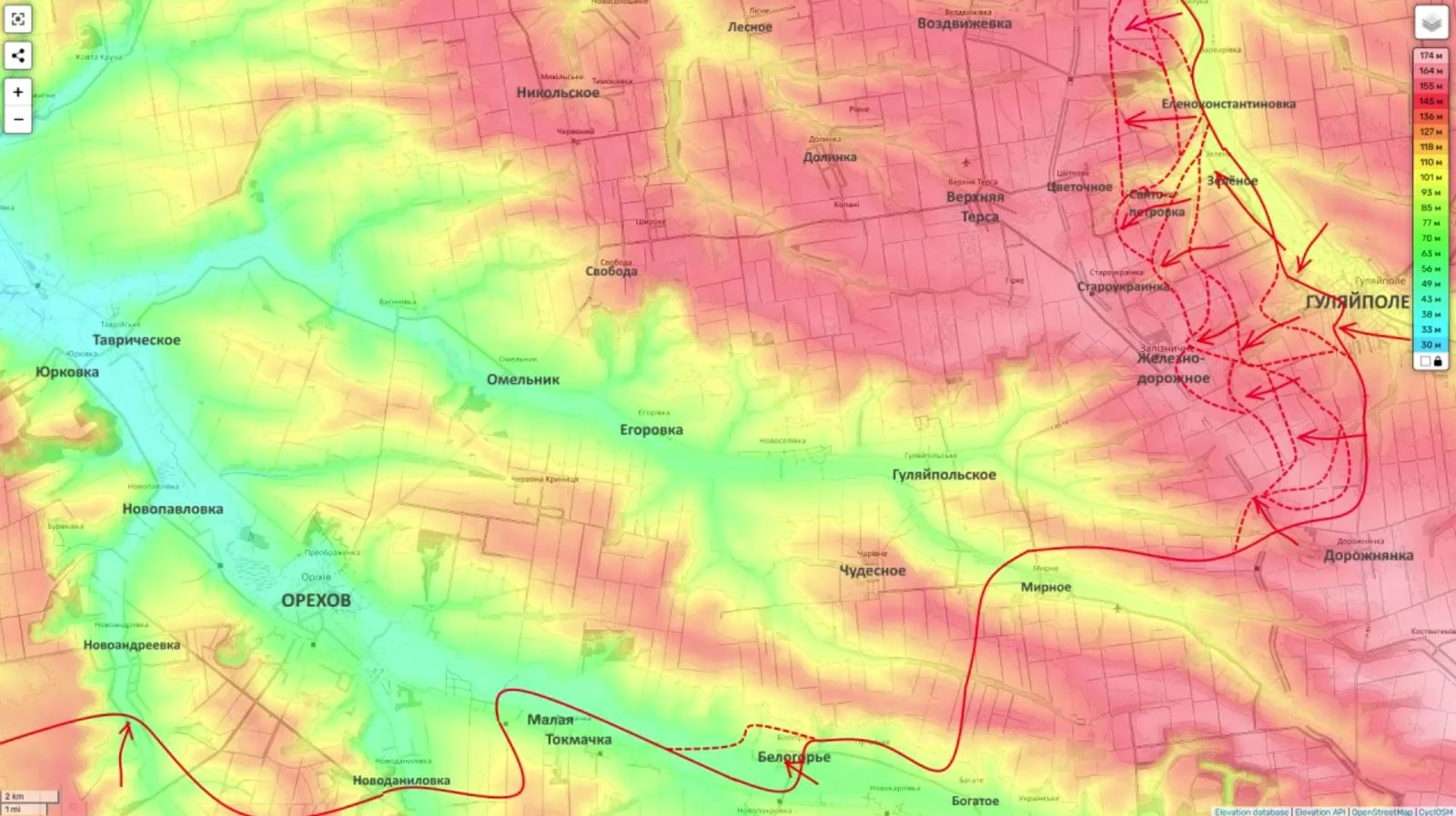 Наблюдается движение к Гуляйпольскому и Верхней Терсе. Цель — замкнуть клещи вокруг Орехова с востока и северо-востока, разгромить группировку врага и открыть путь на Вольнянск и Запорожье.
