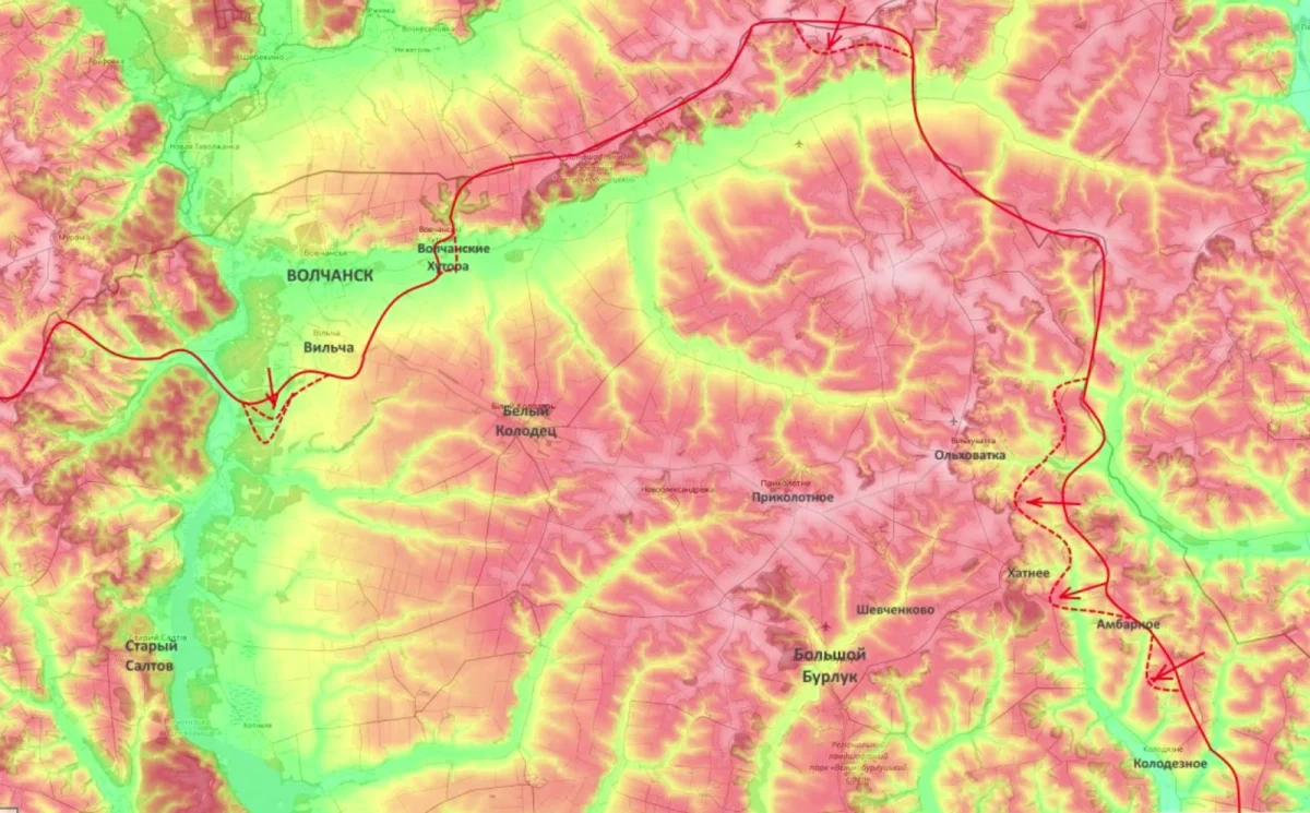 Севернее Купянска ВС РФ наступают на Больше-Бурлукском направлении. Идут бои на окраинах Хатнего, дожимается противник в Амбарном. Цель — сформировать плацдарм для штурма райцентра Великий Бурлук.