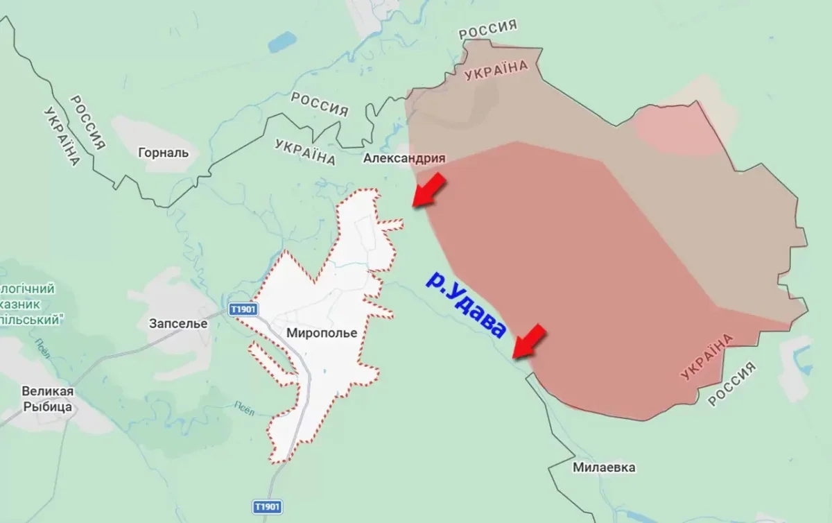 - Район Мирополья: За сутки освобождено около 24 квадратных километров территории. Наши войска вышли к реке Удава. Глубина прорыва составила 5 км — это рекордный темп продвижения в данном регионе за последние месяцы. Противник отброшен в центральную часть Мирополья. Отсюда открывается прямая дорога на областной центр — Сумы (около 30 км).