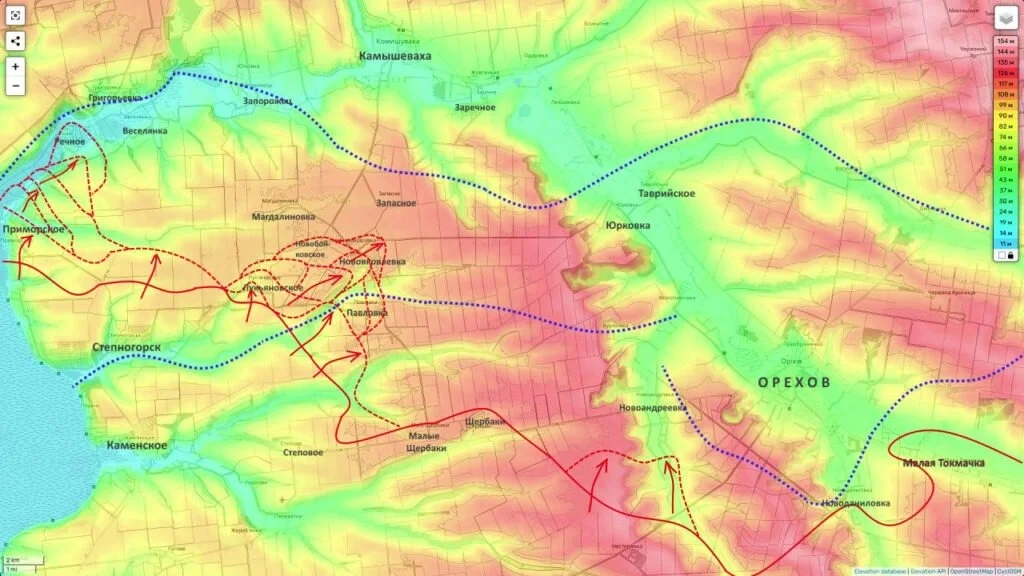 Стратегический замысел российского командования на этом участке прослеживается четко: выход к линии реки Конка с ее последующим форсированием. Это позволит создать надежный плацдарм для дальнейшего наступления непосредственно в сторону города Запорожье.