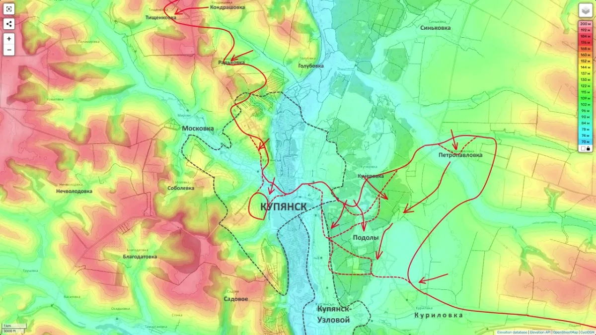 В самом Купянске противник, несмотря на наше тотальное превосходство в артиллерии и авиации, пытается сжать кольцо вокруг наших подразделений на западном берегу Оскола.