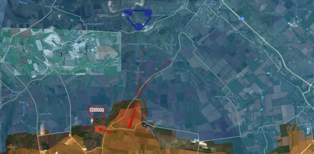 Установление контроля над высотой 190 метров у Торецкого открывает оперативный простор для броска на Павловку, Приют и Торское. Фактически, начинается битва за последние серьезные укрепрайоны перед Дружковкой — Новогригоровку и Райское.