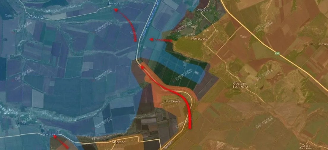 Противник все еще цепляется за опорные пункты на высотах (отметки 215–225 м) между каналом и Миньковским лесом. Однако этот сектор уже попал в «огневой мешок» и его зачистка — вопрос ближайшего времени. Выход к магистрали Е-40 позволит нашим войскам начать штурм Тихоновки и Малиновки, открывая прямую дорогу на Славянск.