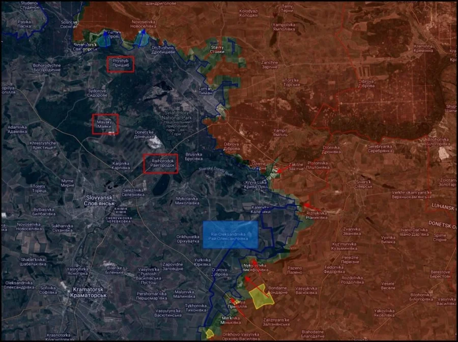Константиновка и Северск: В районе Константиновки подразделения ВС РФ предпринимают попытки расширить зону контроля у Берестка и Ильиновки. В черте самого города фиксируются локальные городские бои. На Северском выступе горячими точками остаются Никифоровка, Резниковка и Кривая Лука, где идут бои за улучшение тактического положения.