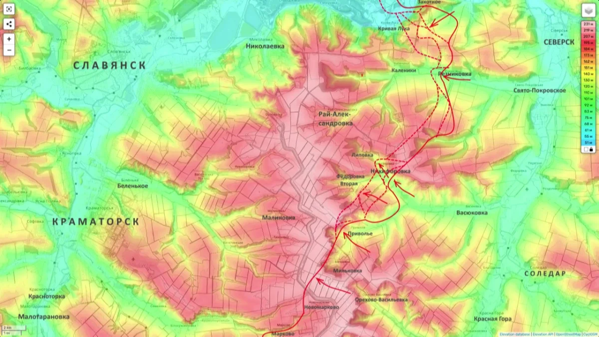 - Краматорский вектор: Российские войска атакуют южнее Кучерова Яра. Есть тактические успехи, которые являются частью более широкого замысла по выходу на рубеж Новониколаевка — Новогригорьевка — Райское. Идут бои у Павловки и на подступах к Торскому.