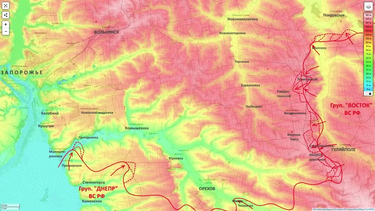 Параллельно южнее 5-я армия ВС РФ развивает успех, полностью освободив н.п. Зализничное (Железнодорожное). Тем не менее, фланговые удары противника создают серьезные риски, требующие от российского командования оперативной реакции.