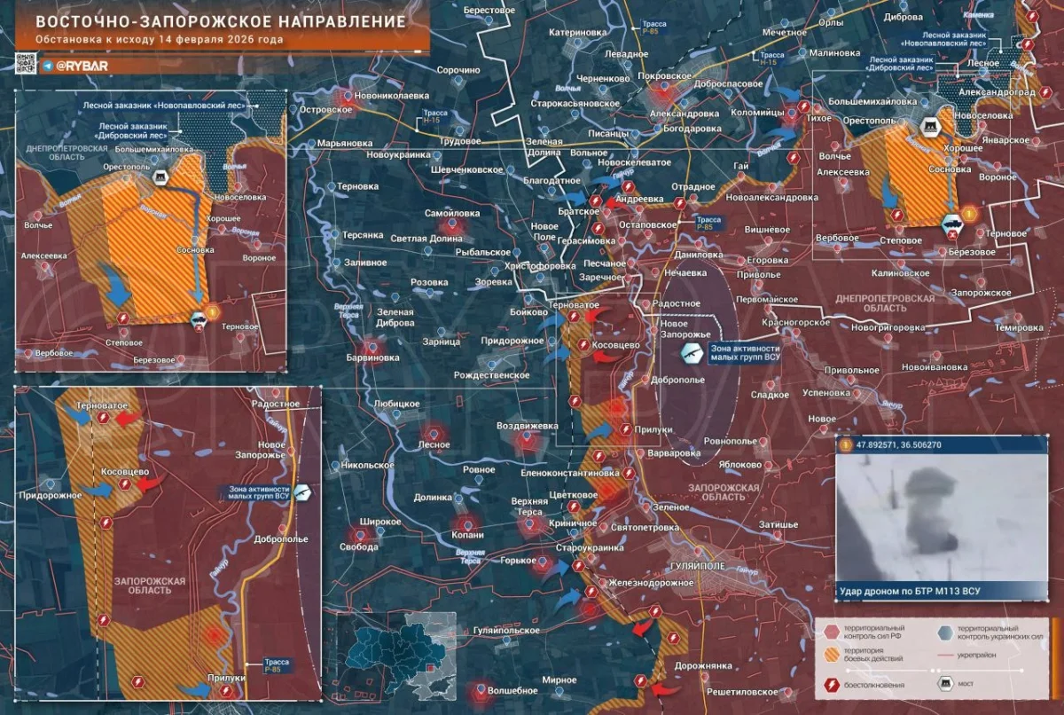Фронтовая сводка к утру 15 февраля 2026: Разгром ВСУ на Запорожском направлении и уничтожение логистики Константиновки