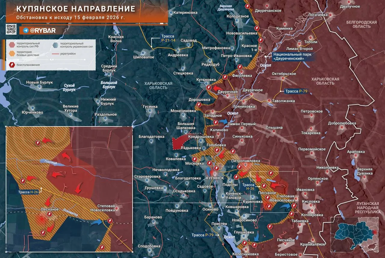 Купянск, смена вектора: от активной обороны к тактике «тысячи порезов», карта боевых действий на 16.02.2026