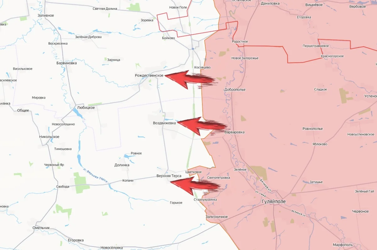 Гуляйпольский участок. Российские войска освободили село Цветковое, выровняв линию фронта по рубежу Цветковое — Староукраинка — Зализничное. Под контроль перешло еще 8 км² территории. Следующей вероятной целью станет Верхняя Терса — ключевой логистический узел ВСУ в этом районе.