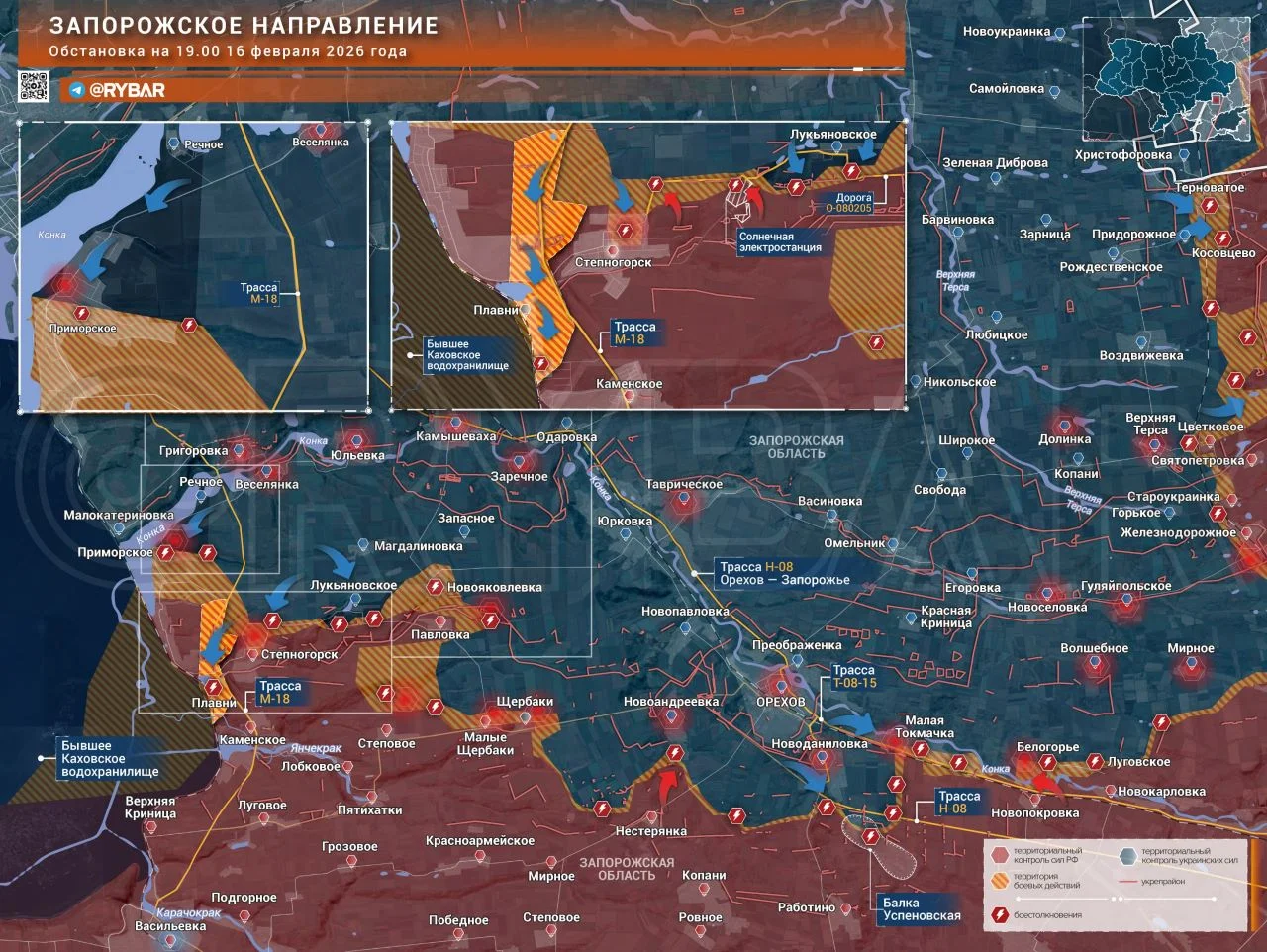 Запорожский фронт в огне: новости СВО от 17 февраля 2026. Карта боёв на Украине сегодня, военная сводка, 1454-й день спецоперации России на Украине